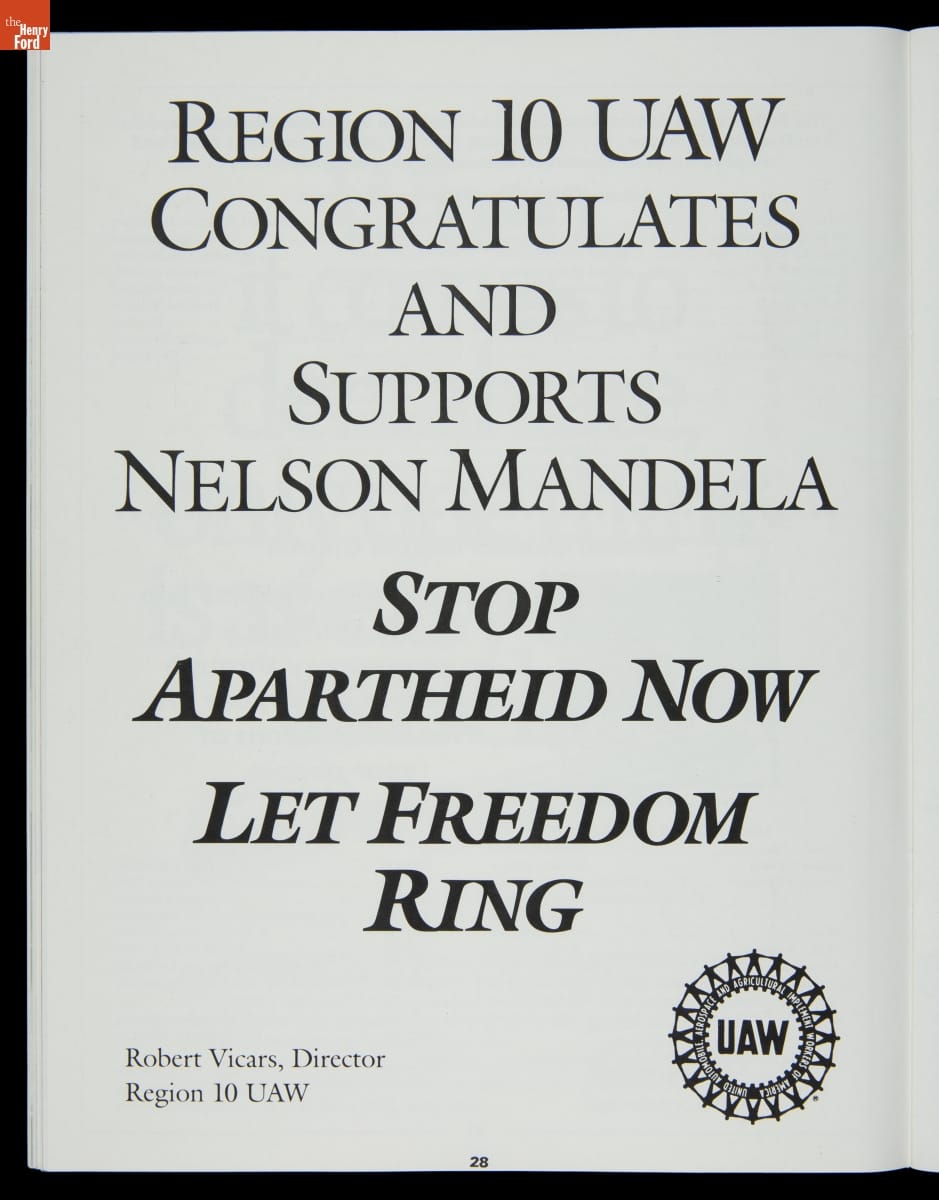 THF711401 / Nelson Mandela Freedom Tour Program, "Amandla: Mandela Detroit '90," June 28, 1990 / page 28