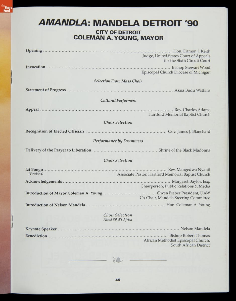 THF711418 / Nelson Mandela Freedom Tour Program, "Amandla: Mandela Detroit '90," June 28, 1990 / page 45