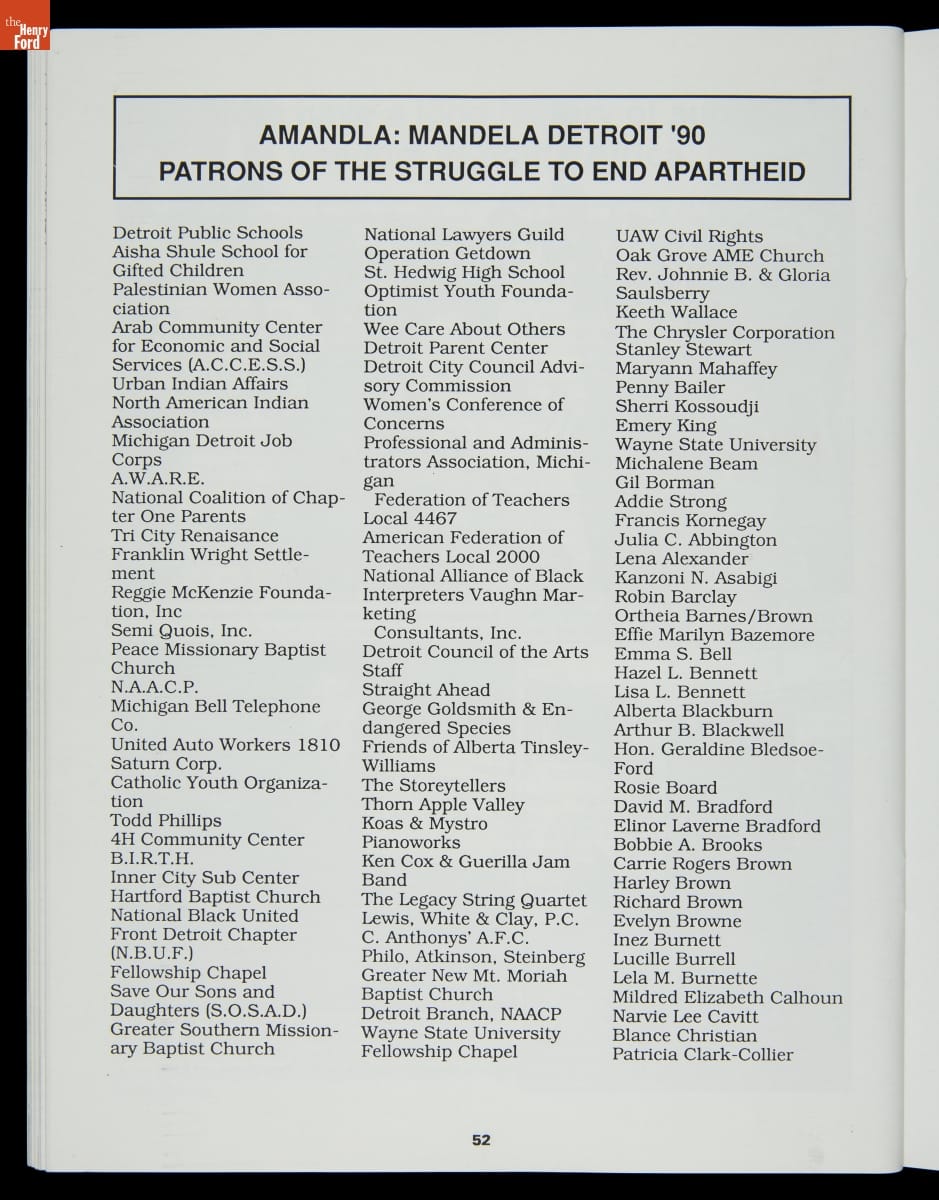 THF711425 / Nelson Mandela Freedom Tour Program, "Amandla: Mandela Detroit '90," June 28, 1990 / page 52