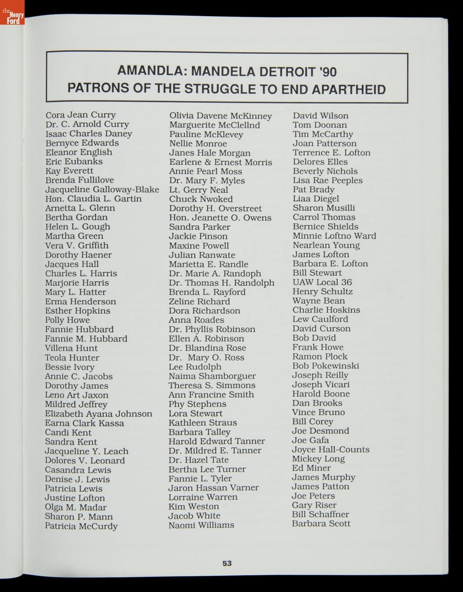 THF711426 / Nelson Mandela Freedom Tour Program, "Amandla: Mandela Detroit '90," June 28, 1990 / page 53