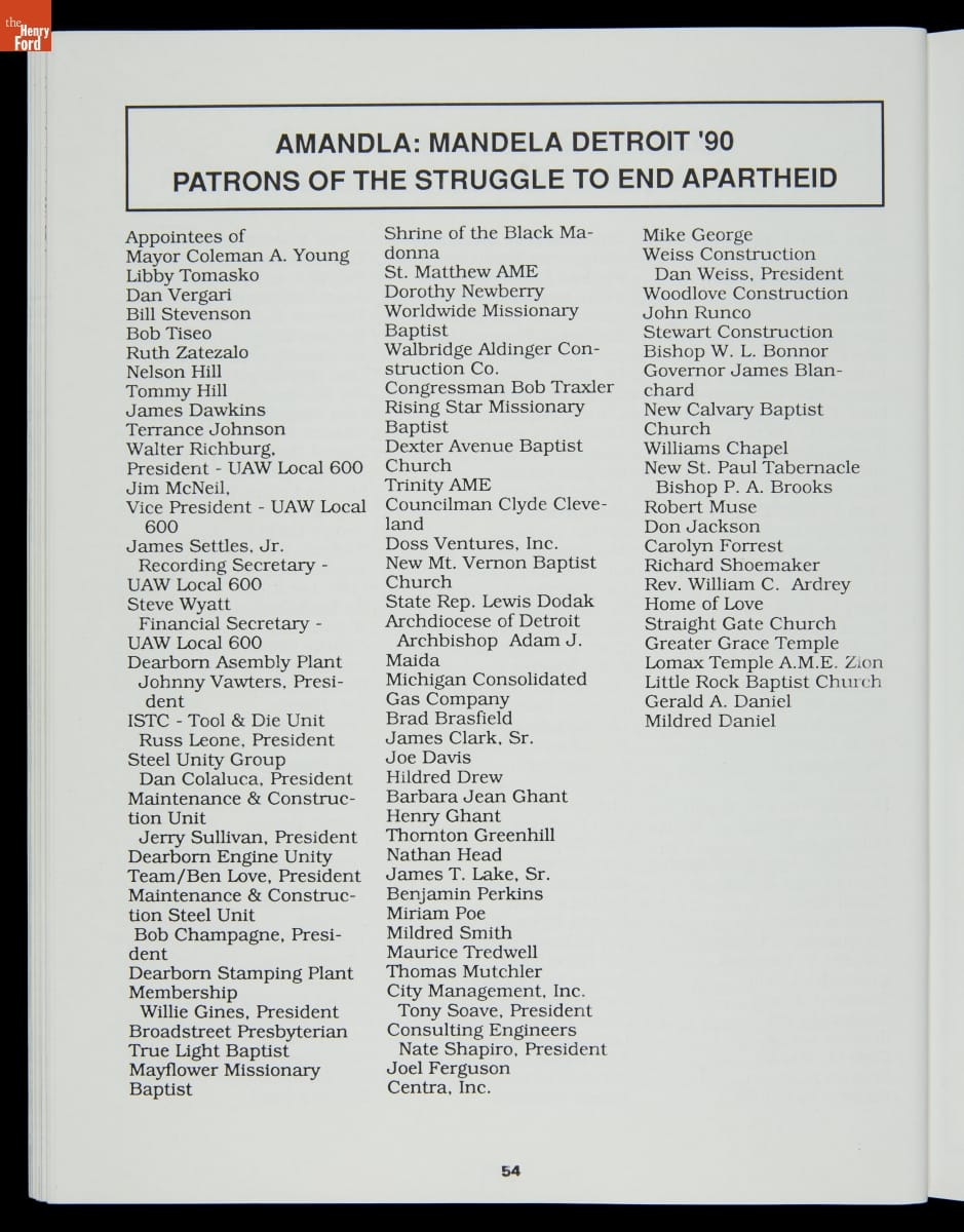 THF711427 / Nelson Mandela Freedom Tour Program, "Amandla: Mandela Detroit '90," June 28, 1990 / page 54