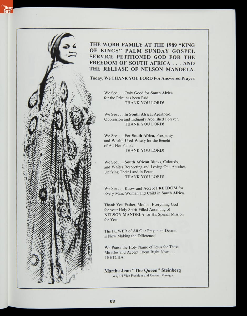 THF711436 / Nelson Mandela Freedom Tour Program, "Amandla: Mandela Detroit '90," June 28, 1990 / page 63