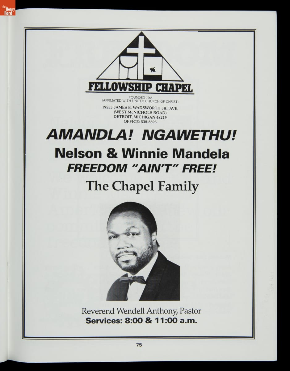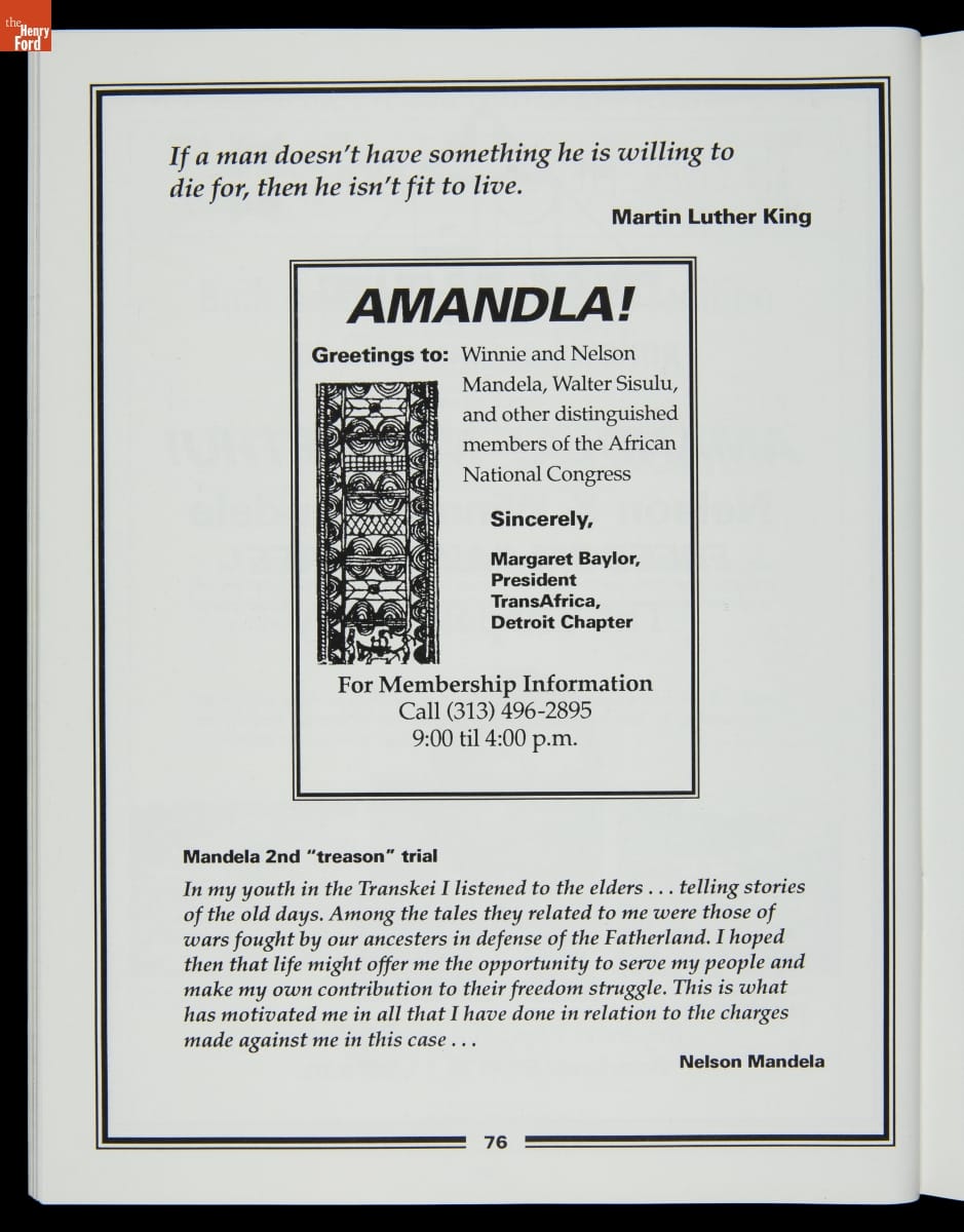 THF711449 / Nelson Mandela Freedom Tour Program, "Amandla: Mandela Detroit '90," June 28, 1990 / page 76
