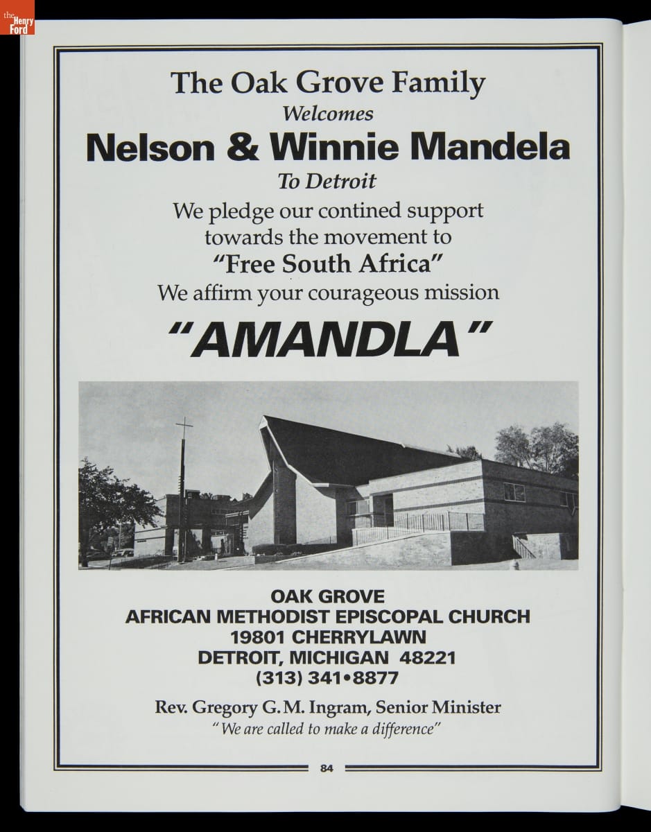 THF711457 / Nelson Mandela Freedom Tour Program, "Amandla: Mandela Detroit '90," June 28, 1990 / page 84
