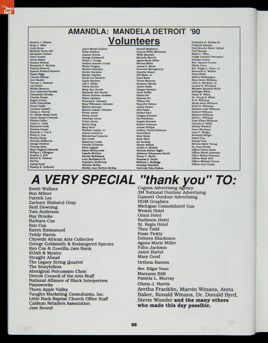 THF711461 / Nelson Mandela Freedom Tour Program, "Amandla: Mandela Detroit '90," June 28, 1990 / page 88