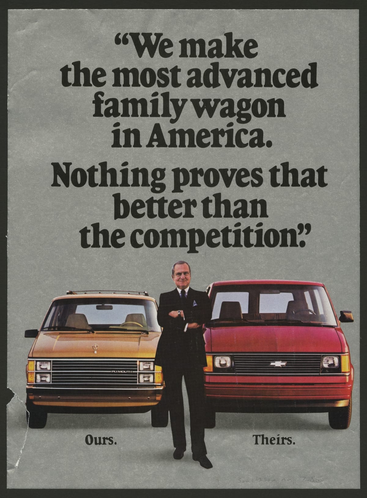 "We make the most advanced family wagon in America. Nothing proves that better than the competition." Even when we showed them how, they didn't get the message. / Printed at bottom of page: The New Chrysler Corporation. / We don't want to be the biggest. / Just the best.
