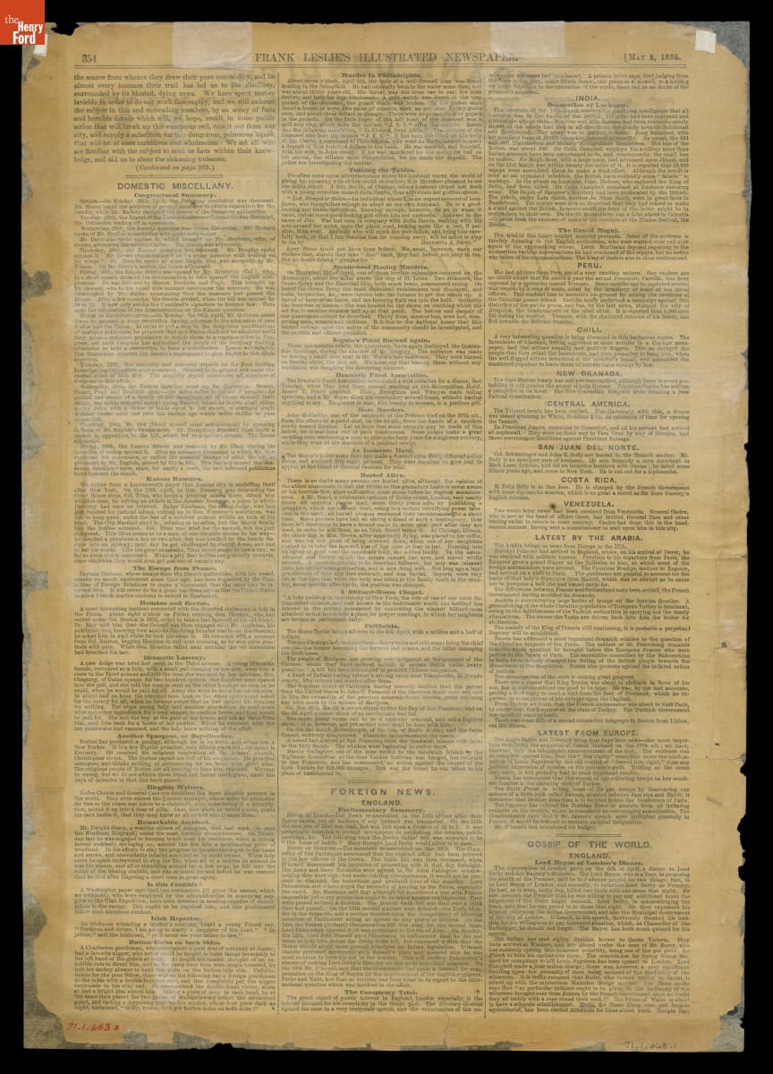 Frank Leslie's scathing articles exposed New York City's "swill milk" scandal in 1858. Whiskey distillers had been keeping dairy cows in cramped sheds and feeding them leftover mash, sickening them and tainting their milk. In turn, the milk--masked with other ingredients and marketed as "pure" to urban consumers--poisoned thousands of infants. New York State finally issued milk regulations in 1862.