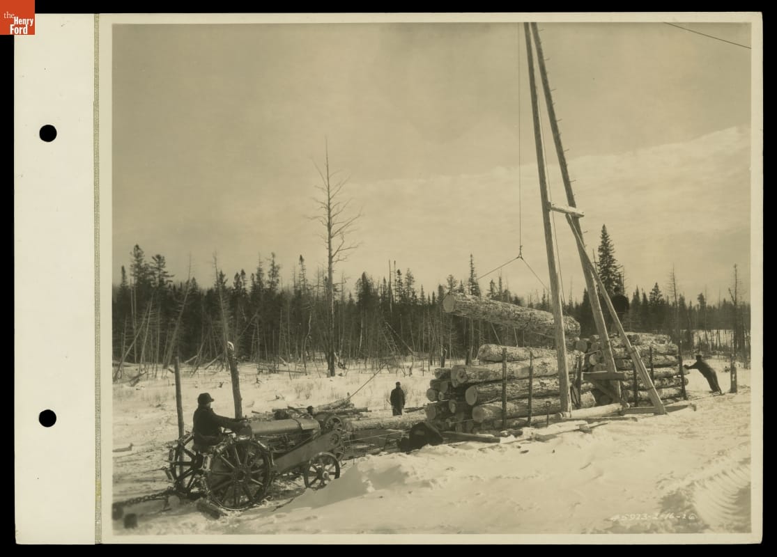 Fordson Tractor Loading Logs with Double Drum Hoist at L'Anse, Michigan, 1926