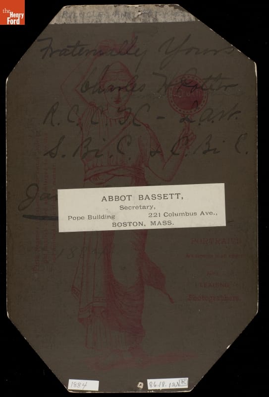 Charles H. Potter was a cyclist from Cleveland, Ohio -- he raced tricycles in the 1880s. More important was his involvement in various cycling organizations, which are listed on the back of the image. Also, if you look closely at his picture, he wears a lapel pin that touted his membership in the Cyclists Touring Club (American Division).