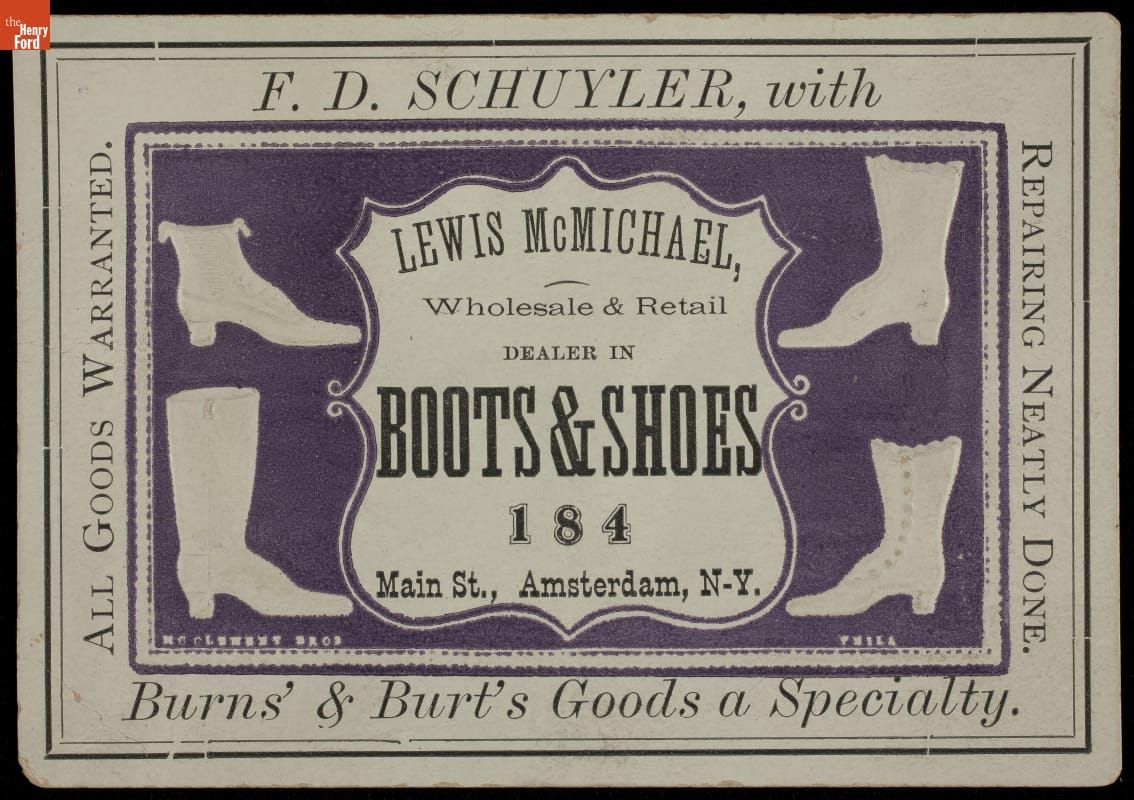 Trade Card for Boots & Shoes, F. D. Schuyler, 1870-1900