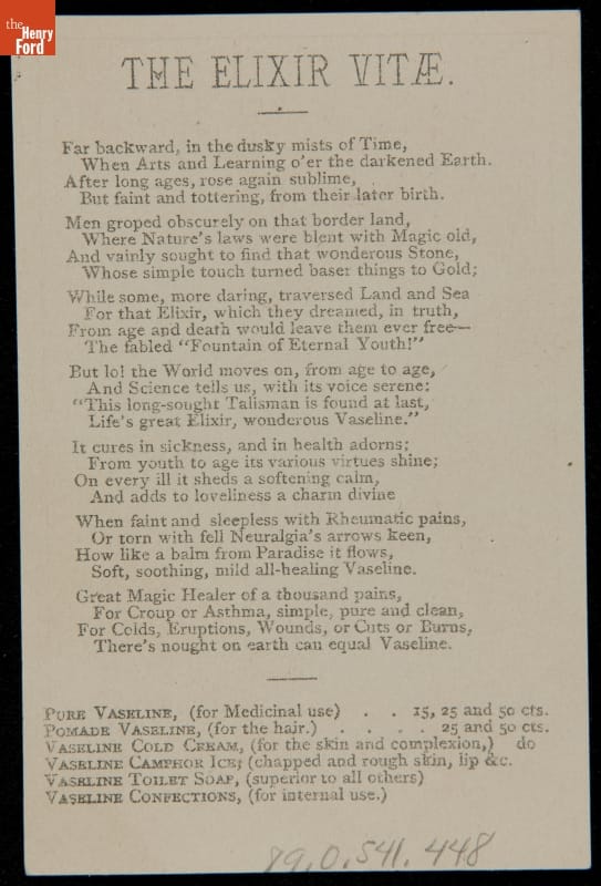 Trade Card for Vaseline Brand Products, Chesebrough Manufacturing Co., 1881-1890