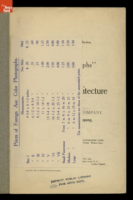 1905 Catalog of Detroit Publishing Co. Photochrom Prints, "Aäc Photographs of Scenery and Architecture"
