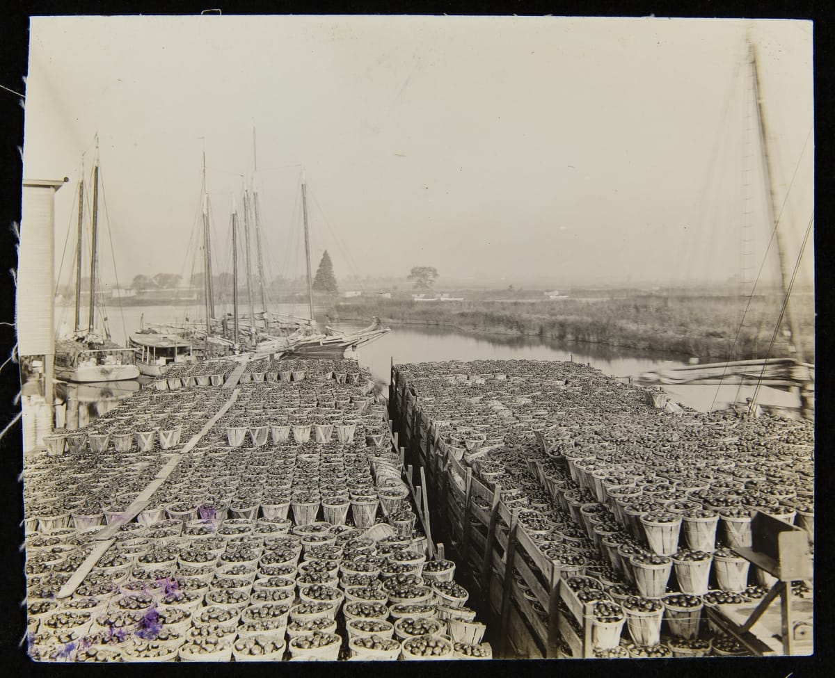 Sometimes sailing vessels ensured the quickest transport form farm to Heinz processing plants. This photograph shows barges loaded with tomatoes in Salem, New Jersey, awaiting the journey to the H.J. Heinz main plant in Pittsburgh, Pennsylvania.