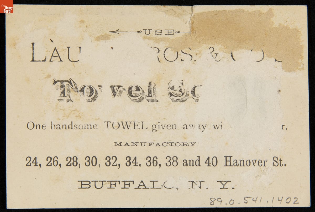 Trade Card for Lautz Bros. & Company's Acme Towel Soap, "Saved by Acme Soap!," circa 1885