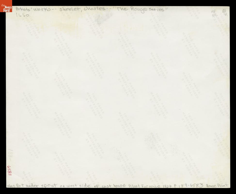 Sheeler took more than thirty-two photographs. Of the prints he developed, one group went to Ford Motor Company. Of these, only twelve 8 x 10 inch copy negatives were made by the company in 1929 from the original photographs. The company used these images for the covers of their magazine, Ford News between 1929 and 1930. Today, these 1929 contact prints are part of the collections of The Henry Ford.
