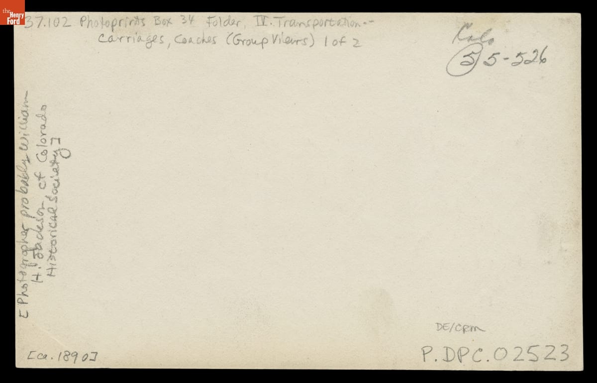 On verso in pencil: [Photographer probably William H. Jackson of Colorado Historical Society]