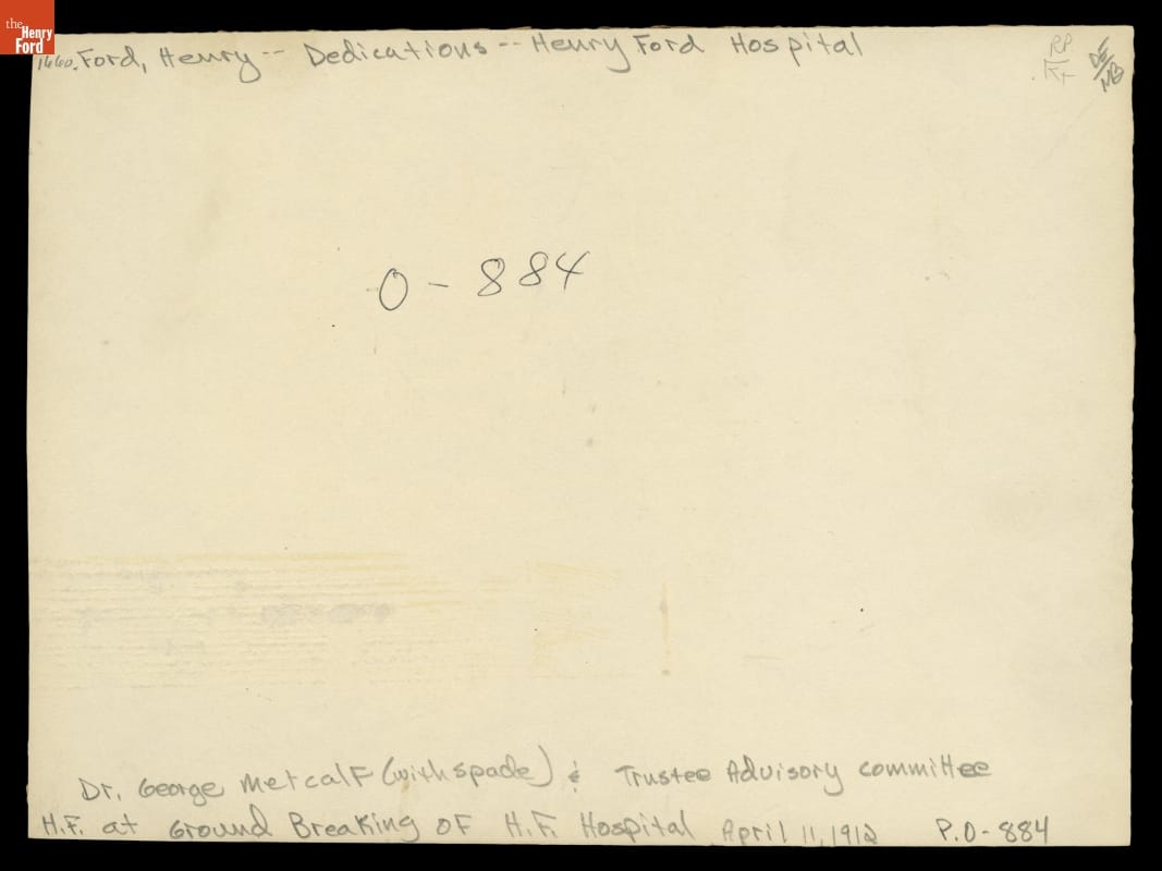 Dr. William F. Metcalf, Henry Ford and Others at the Groundbreaking for Detroit General Hospital, Later Known as Henry Ford Hospital, Detroit, Michigan, April 11, 1912