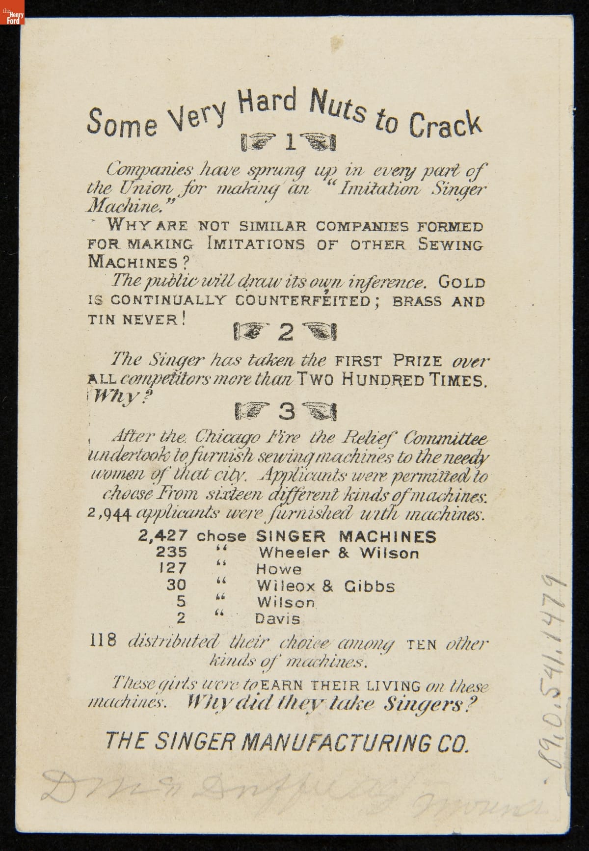 Trade Card for Singer Sewing Machines, 1872-1880