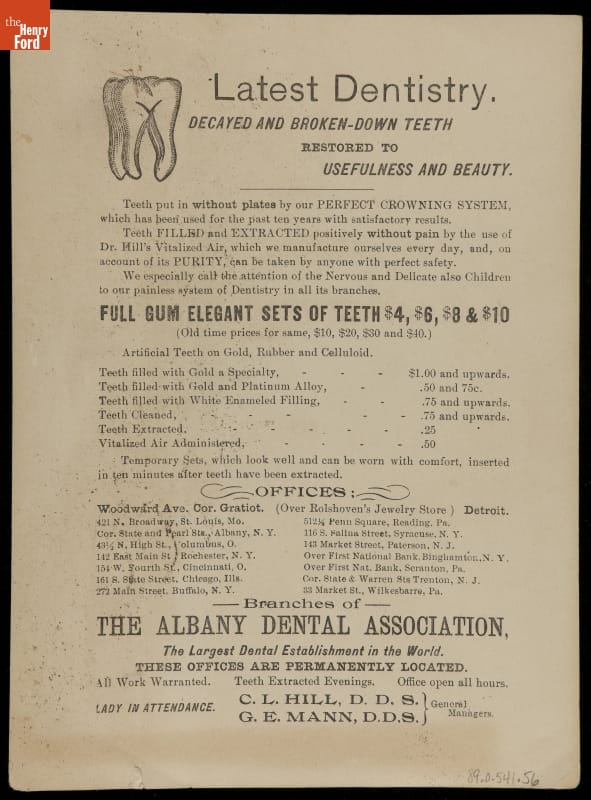 Trade card made for the Albany Dental Association, Detroit, Michigan