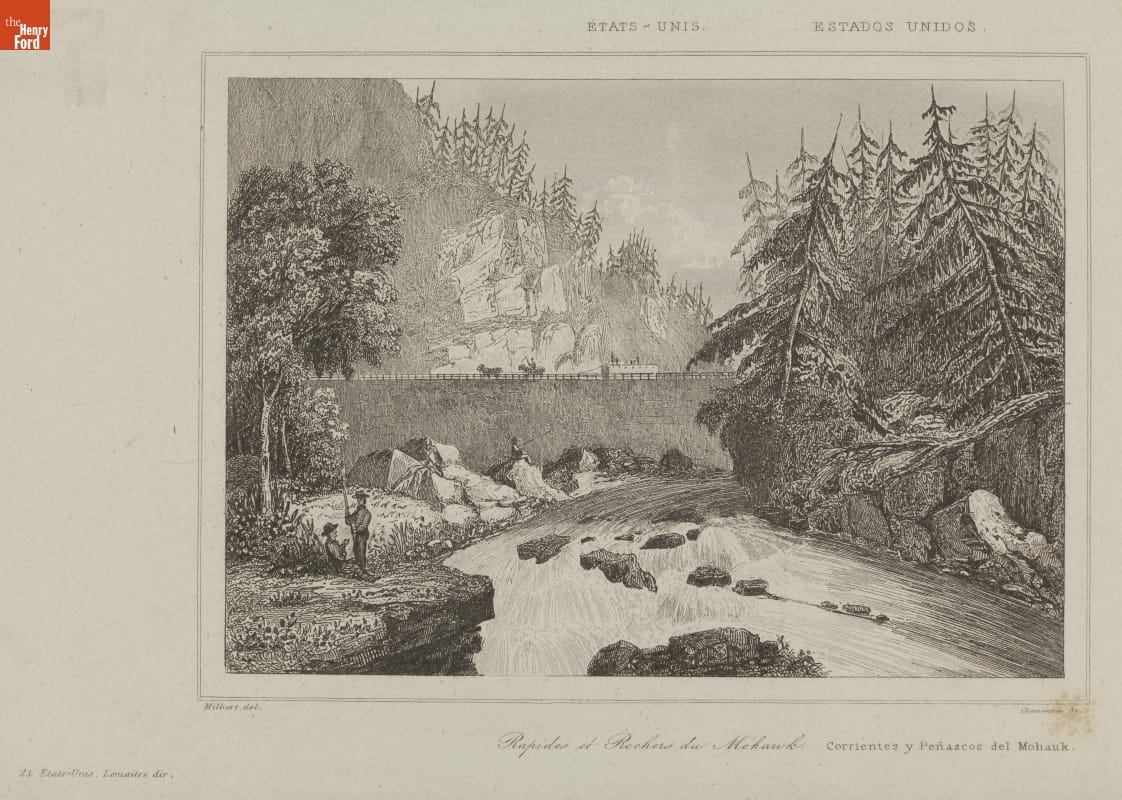 THF203994 / Engraving, "Rapides et Rocher du Mohawk," circa 1838 / detail
