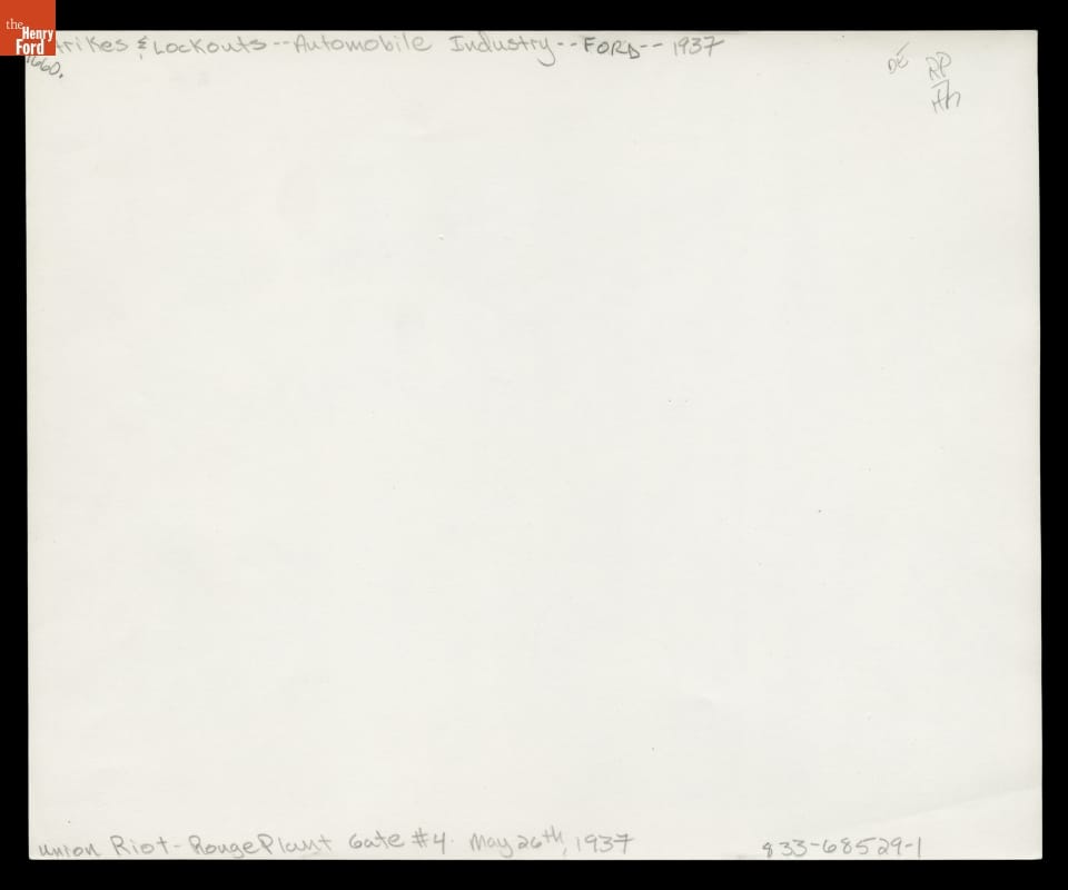 Ford Motor Company refused to recognize the United Auto Workers labor union and hired guards to resist unionization among Ford employees. In May 1937, men from Ford's Service Department attacked labor organizers on a pedestrian overpass at Ford's Rouge Plant, beating several men and women. This bloody "Battle of the Overpass" became a lasting symbol of the American labor struggle.