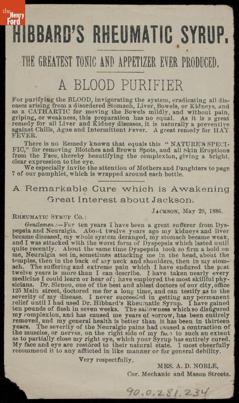 Trade Card for Hibbard's Rheumatic Syrup, Rheumatic Syrup Company, 1886