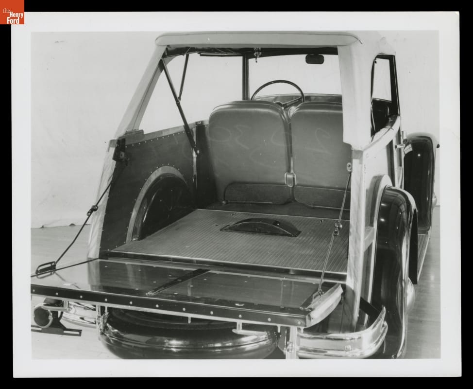 In 1944, Ford Motor Company president Henry Ford II requested the head of the Design Department, Bob Gregorie, to refurbish an unused 1931 Model A into a vehicle that Ford could use around his summer home. Gregorie, seeing the postwar potential of this type of vehicle, took the challenge. He knit together unused Ford parts with unrestricted wartime material to create this wood-bodied Estate Wagon.