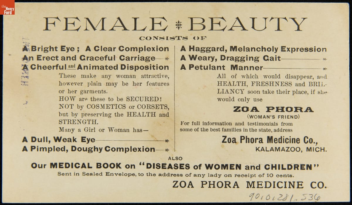 Trade Card for Zoa Phora Medicine Company, 1862-1890