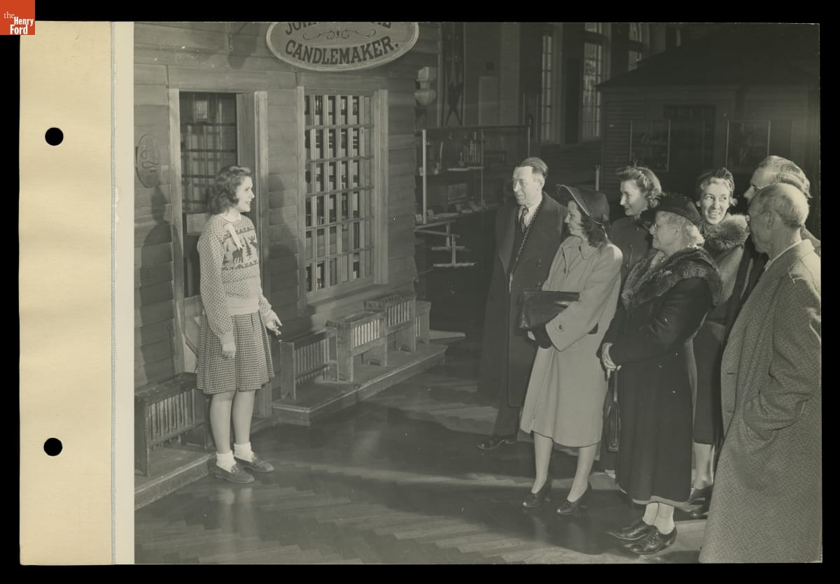 Edison Institute School Student Leading a Tour of Henry Ford Museum "Street of Shops," circa 1943