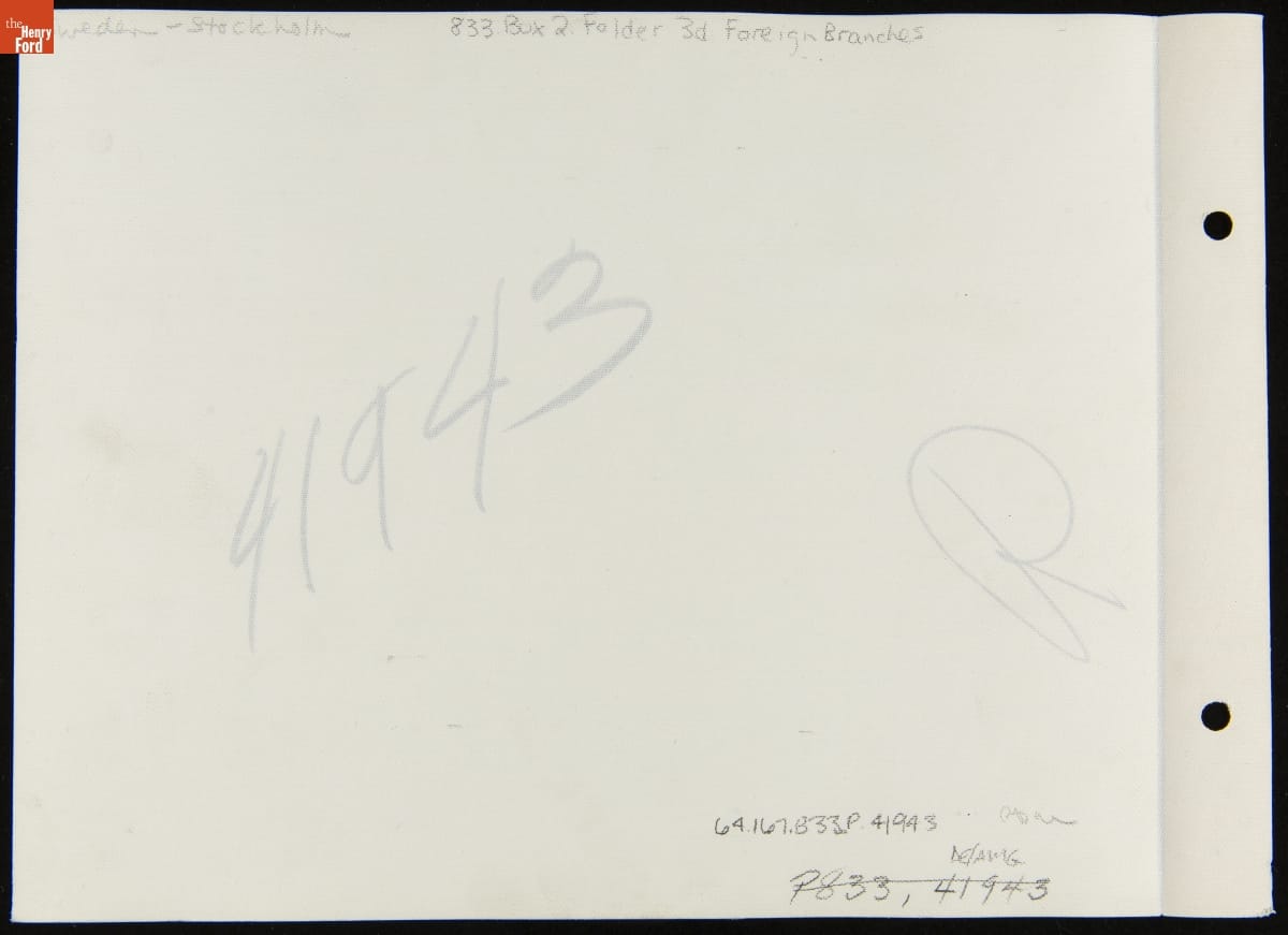 Ford Motor Company operated sales and service branches, as well as assembly plants, in cities around the world. These facilities allowed the company to better serve its global customers. This photograph shows Ford's branch in Stockholm, Sweden, which opened in 1924.