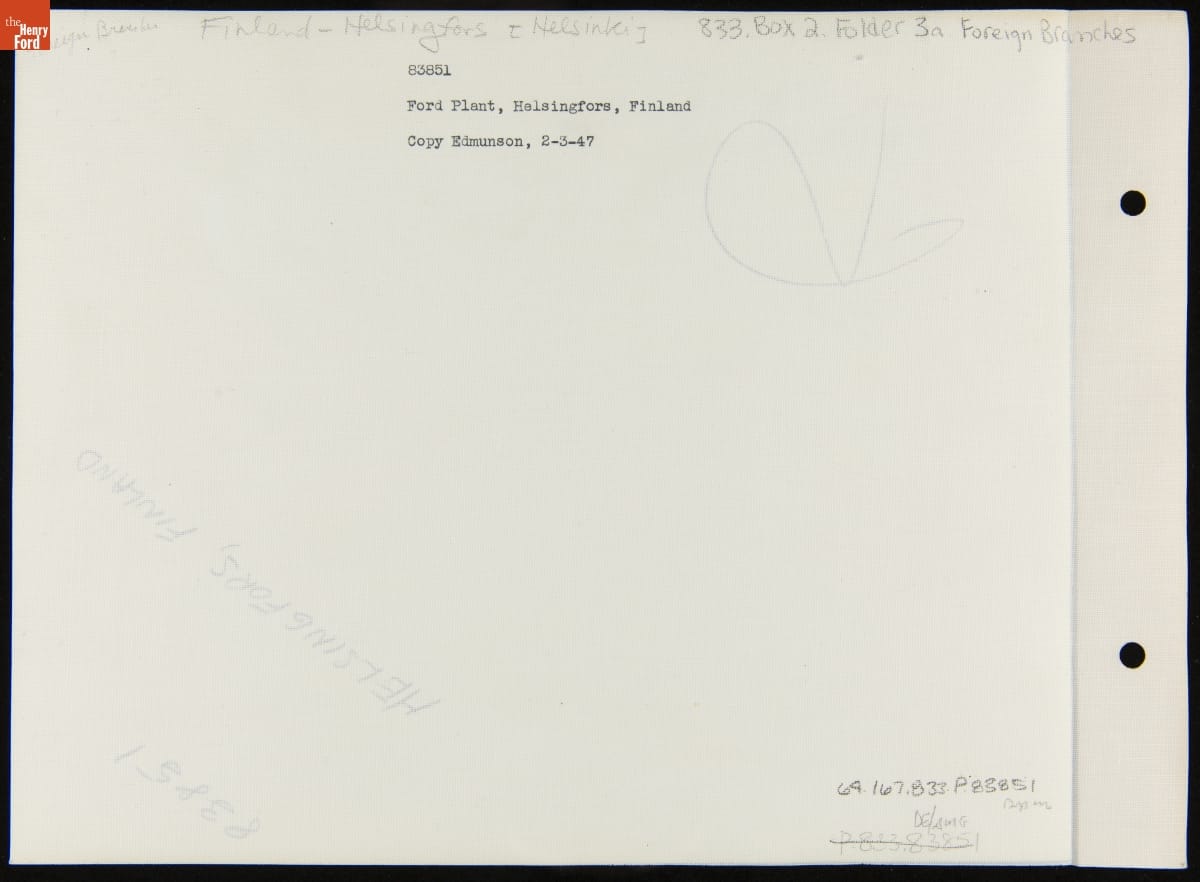 Aerial View of Ford Motor Company Branch in Helsingfors [Helsinki], Finland, February 3, 1947
