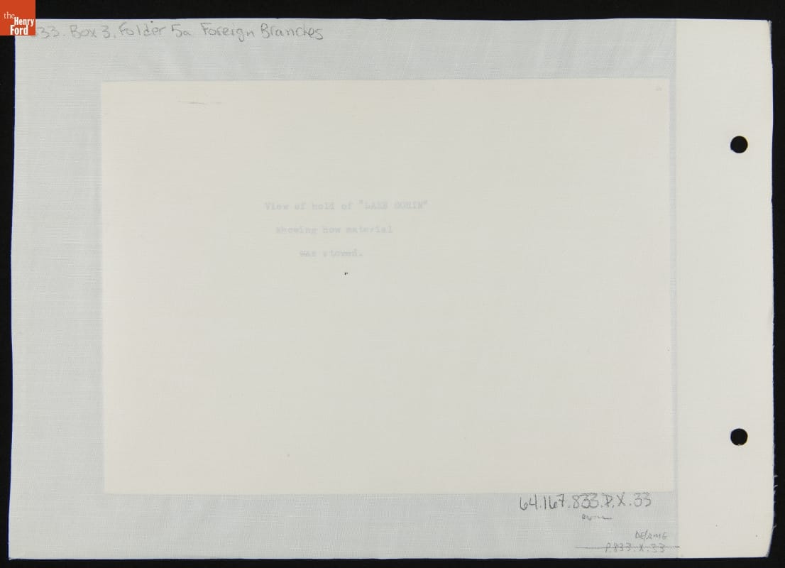 Material Stowed in the Cargo Hold of SS Lake Gorin, Cork, Ireland, circa 1928