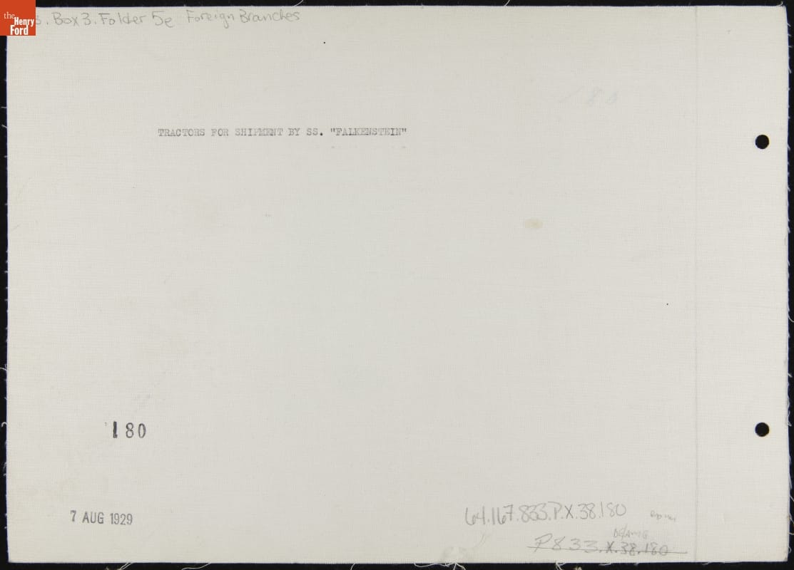Tractors for Shipment on the SS Falkenstein, Ford Plant at Cork, Ireland, August 1929