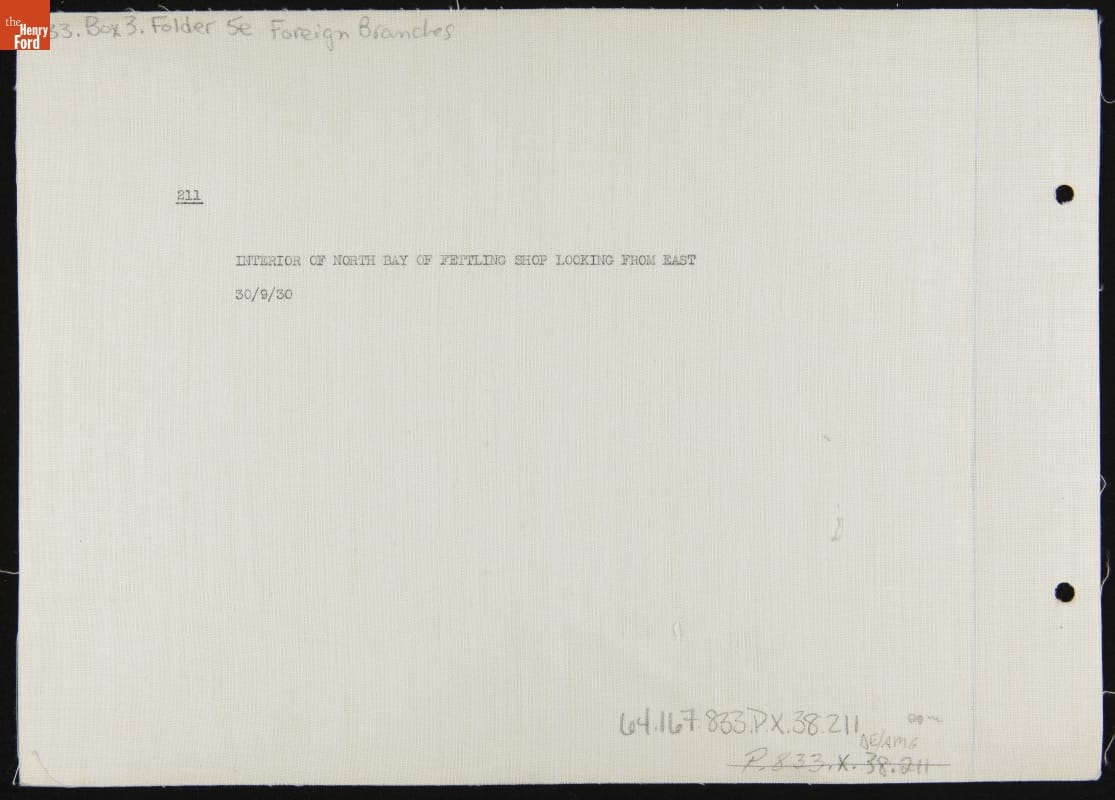 North Bay of Fettling Shop, Ford Plant at Cork, Ireland, September 1930