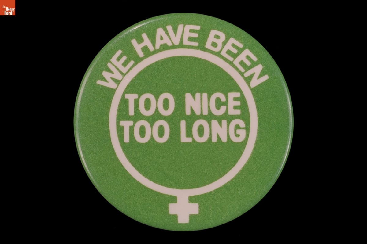 The Civil Rights movement of the 1960s inspired other groups of people to demand their equal rights. American women renewed their call for equality during this period. This campaign button from about 1970 urged women to become active supporters for their equal rights.