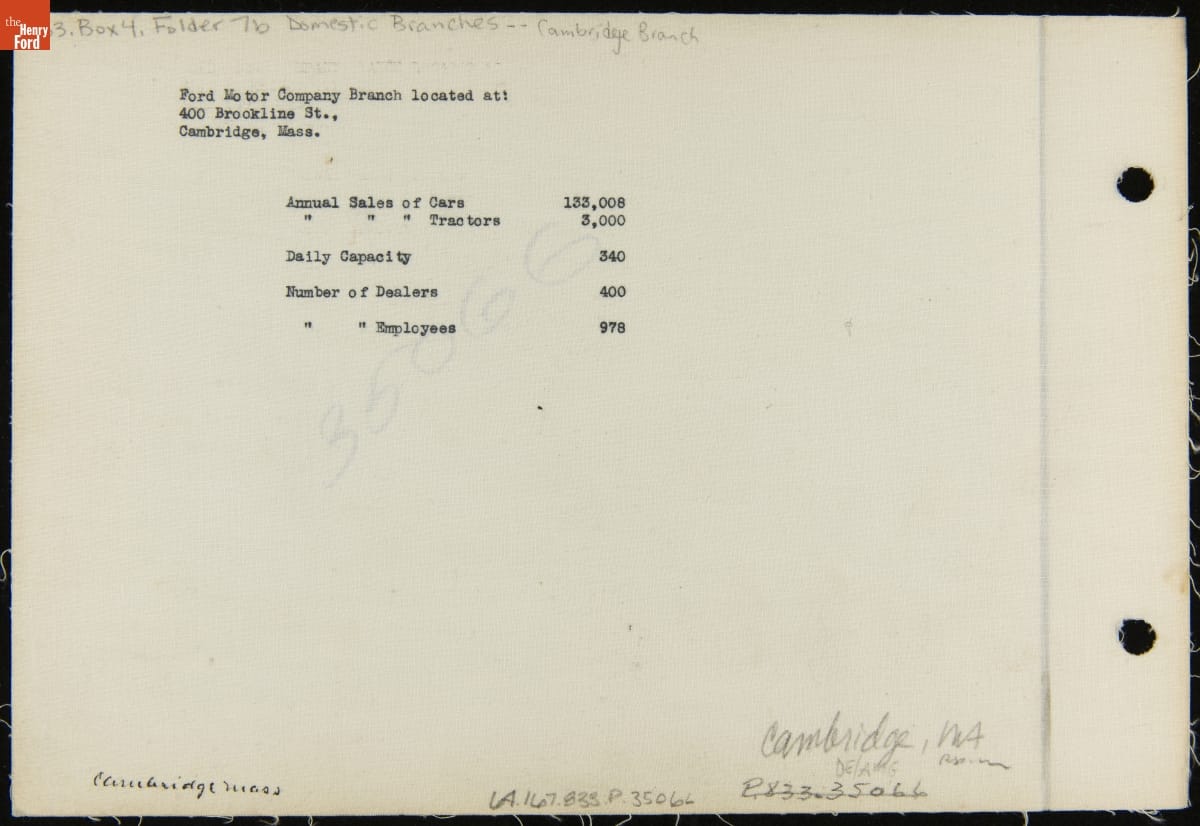 Ford Motor Company Branch in Cambridge, Massachusetts, August 1, 1923