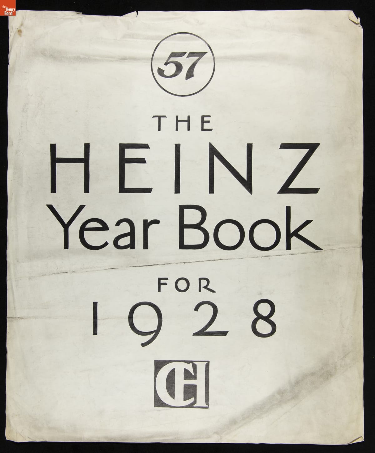 The H.J. Heinz Company employed an ambitious and comprehensive advertising strategy to market its "57 Varieties" of pickled foods and condiments to customers at home, in stores, and everywhere in between. This layout was for the "Heinz Year Book" for 1928, which featured dozens of images that described the company's advertising strategy.