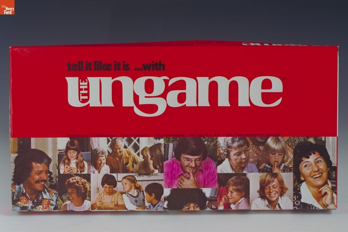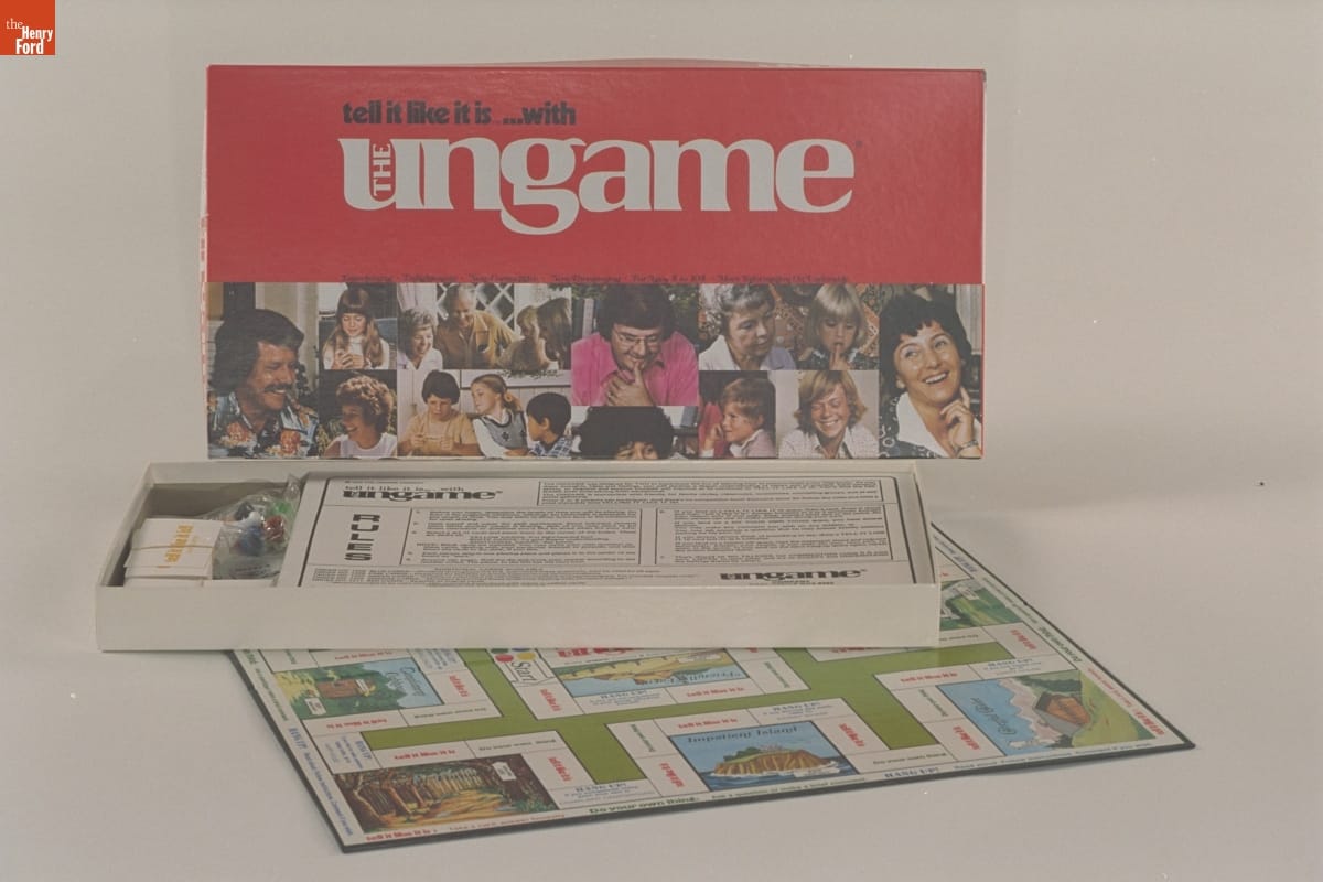 An unusual "non-competitive," "non-threatening" board game, the Ungame encouraged adults and children to improve their communication skills by providing personal questions for the players to answer. The game board included spaces called "tell it like it is" and "do your own thing." Parents undoubtedly liked the game more than kids did.