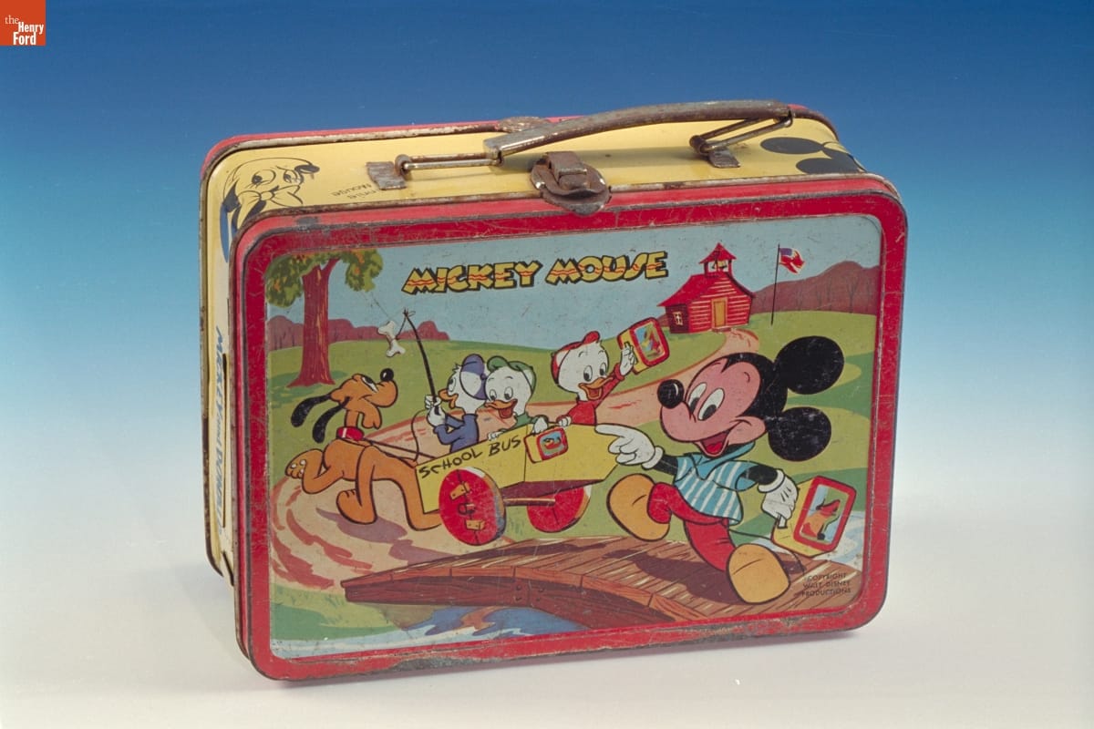 The debut of the Mickey Mouse Club in October 1955 cultivated legions of loyal fans for Walt Disney's personable animated mouse and the talented kids who performed on the show as the "Mouseketeers." The popularity of the show not only resulted in Mickey-related toys, but also other products used by children, like this lunchbox.