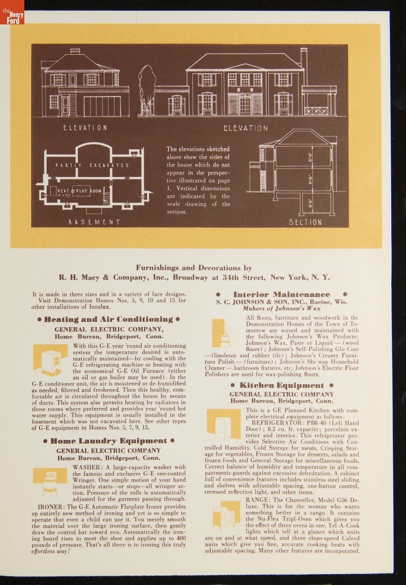 The 1939-40 New York World's Fair encouraged a depression-weary public that the future would be rosy. One exhibition, the Town of Tomorrow, particularly expressed the fair's utopian "Building the World of Tomorrow" theme. Fifteen Demonstration Homes comprised the Town of Tomorrow. Each house practically demonstrated modern building equipment and materials, which were described for fairgoers in a complimentary booklet.