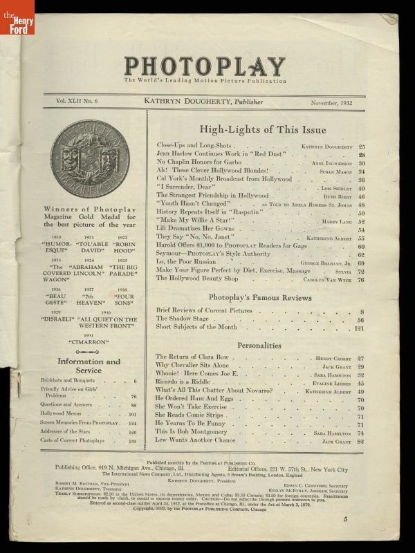 "Photoplay" Magazine for November 1932