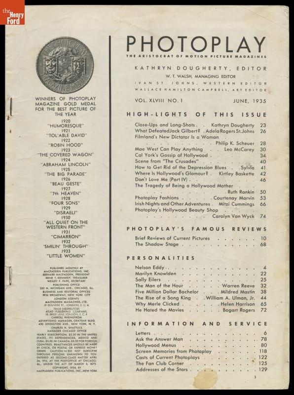 From the beginning of the movie business, Americans wanted to know about the movies and their stars. Photoplay was one of the first movie fan magazines. For nearly seventy years -- from 1911 to 1980 -- this publication provided fans with updates on the film industry, the going-ons in Hollywood and glimpses into the lives of the stars.