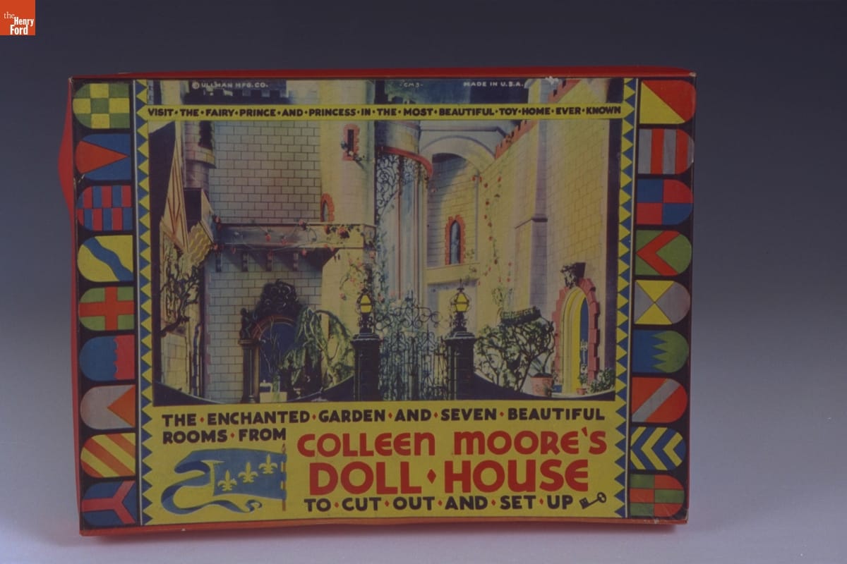 This cardboard dollhouse kit is a replica of the Colleen Moore's Fairy Castle dollhouse. Moore, a popular silent film actress, had a lifelong fascination with miniatures and commissioned the castle in the late-1920s. It took seven years and $500,000 to complete the dollhouse, which stands nearly nine feet tall and has rooms themed after different fairy tales.