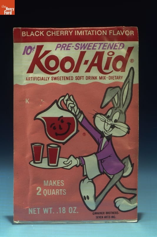 In the 1920s, Nebraska businessman Edwin Perkins developed a popular soft drink concentrate. The glass bottles he shipped it in were heavy and often leaked or broke, so Perkins reworked his liquid recipe to create a powdered mix that could be packaged in paper envelopes. Kool-Aid quickly became an American favorite. In the 1950s, General Foods Corporation purchased Perkins's company and introduced the iconic Kool-Aid pitcher.