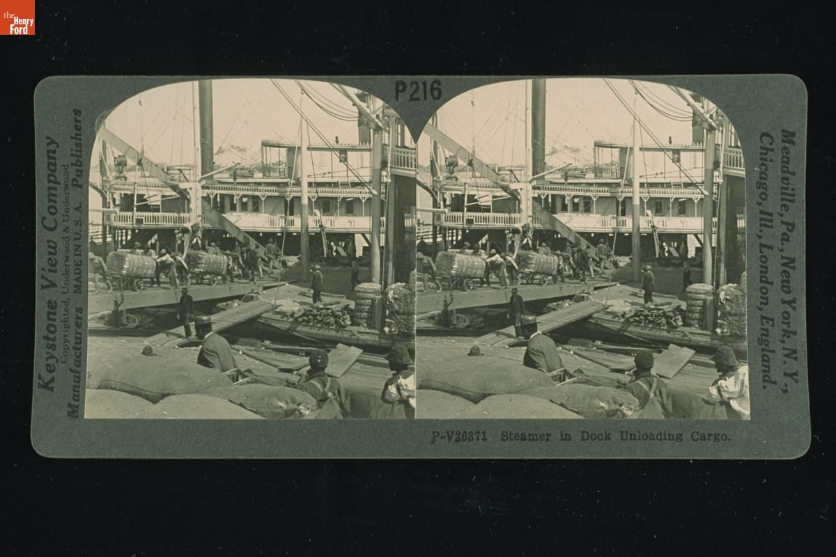 bottom, right: P-V26371 Steamer in Dock Unloading Cargo