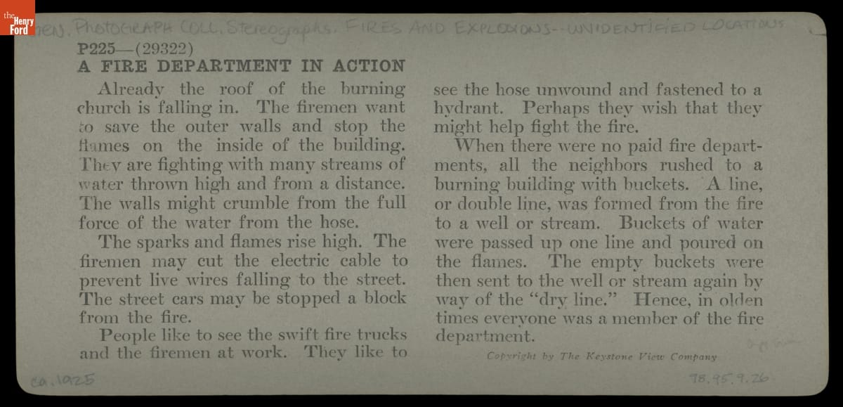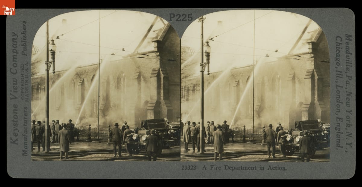 Stereograph, "A Fire Department in Action," circa 1925