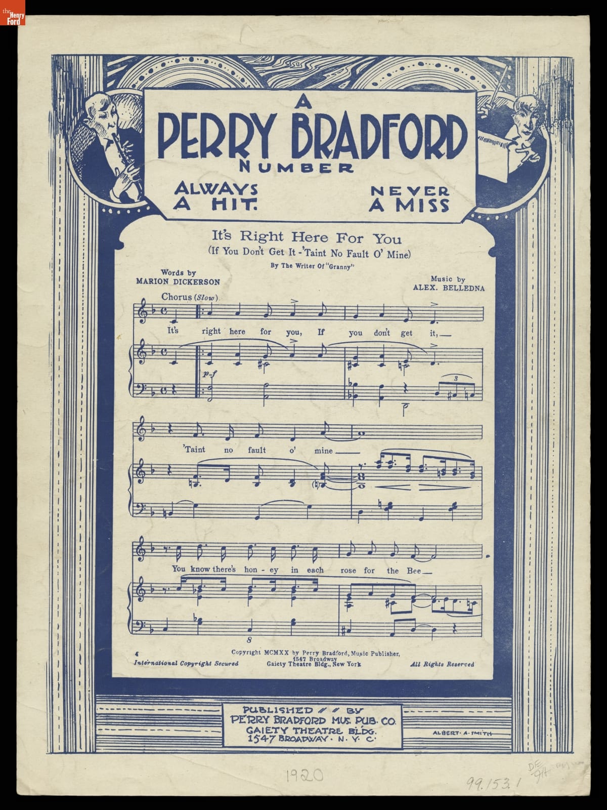 Get this number for your phonograph on Okeh Record No. 4169 / PUBLISHED BY PERRY BRADFORD MUSIC PUB. CO. 1547 BROADWAY, N.Y.C.