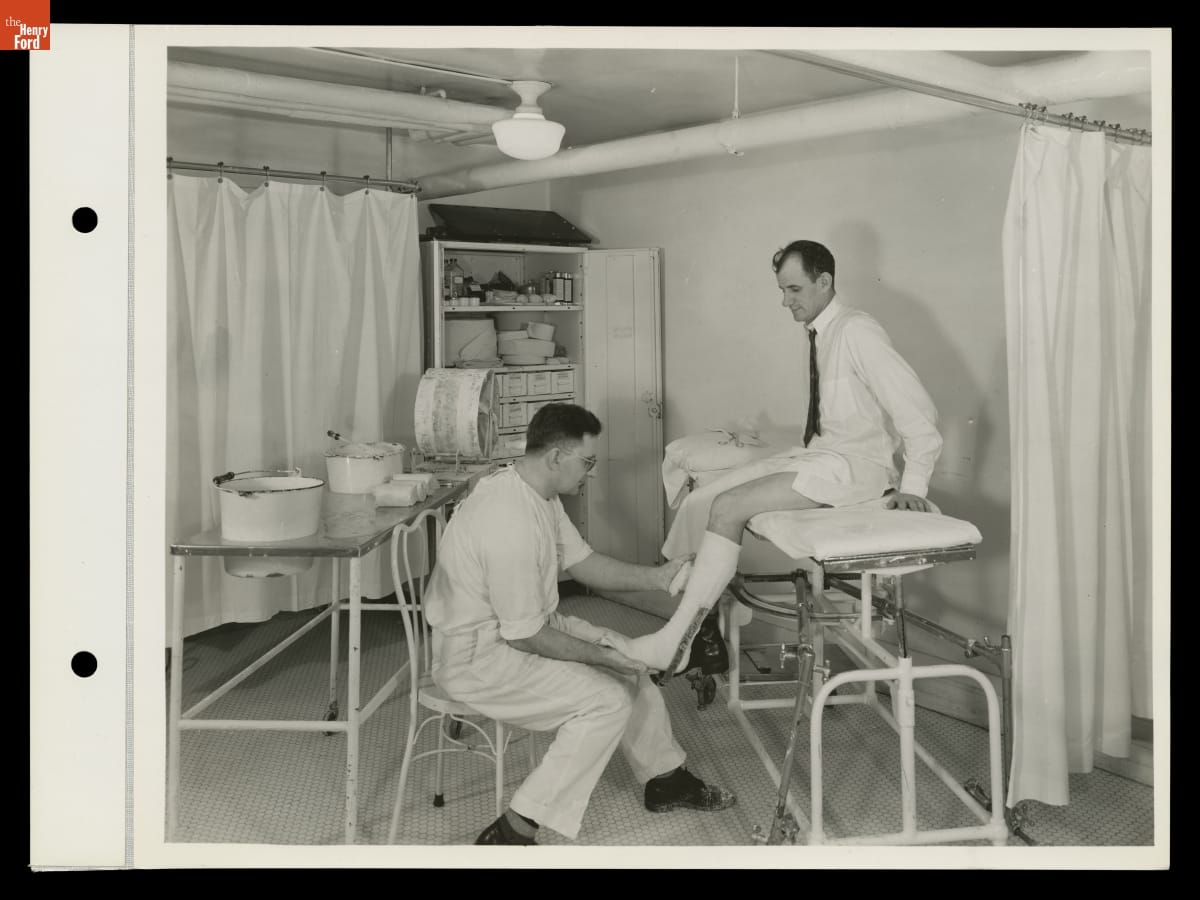 Man Setting a Cast at Henry Ford Hospital, Detroit, Michigan, November 1946