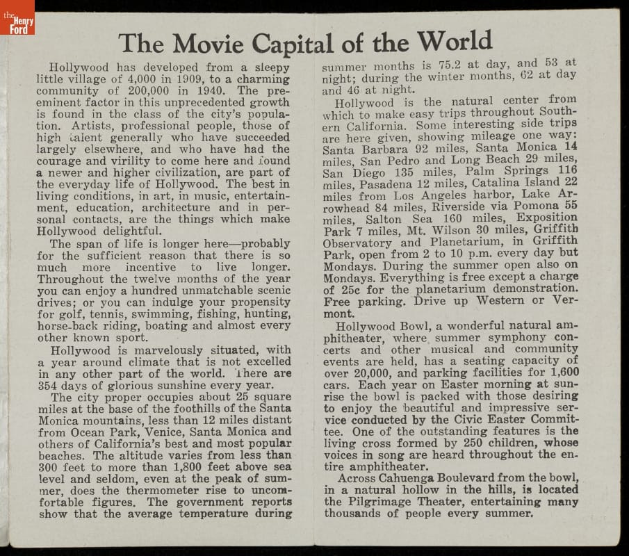 "Auto Map: Hollywood Movie Capital of the World," circa 1942