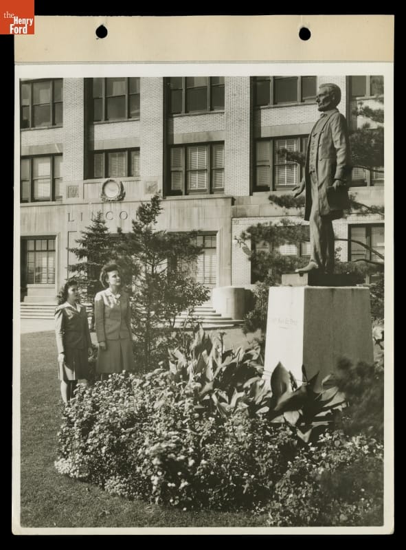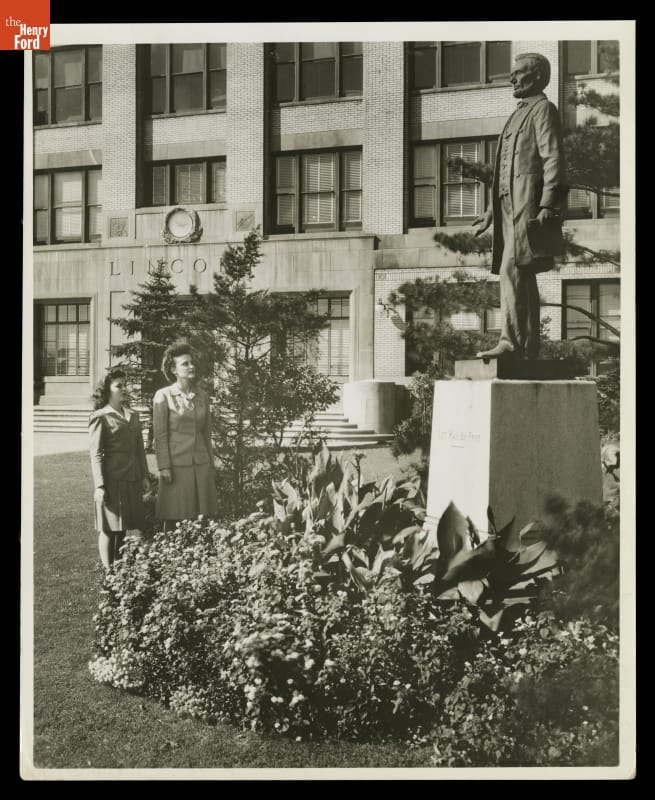 Young Women at the Abraham Lincoln Statue outside the Ford Motor Company Lincoln Plant, 1944